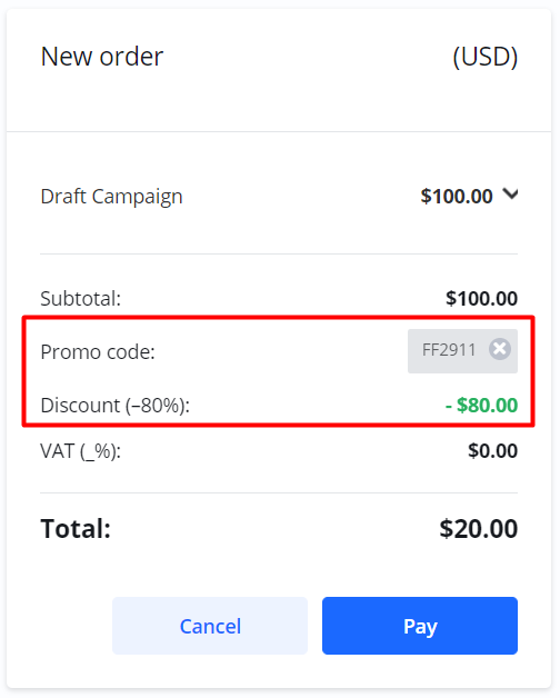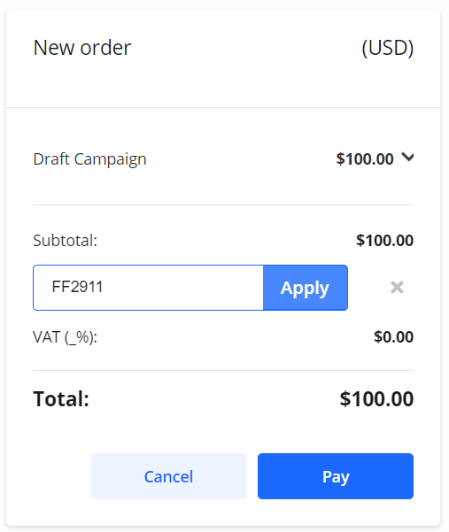 As the last step in the Campaign Wizard, you can check out and pay for the campaign.