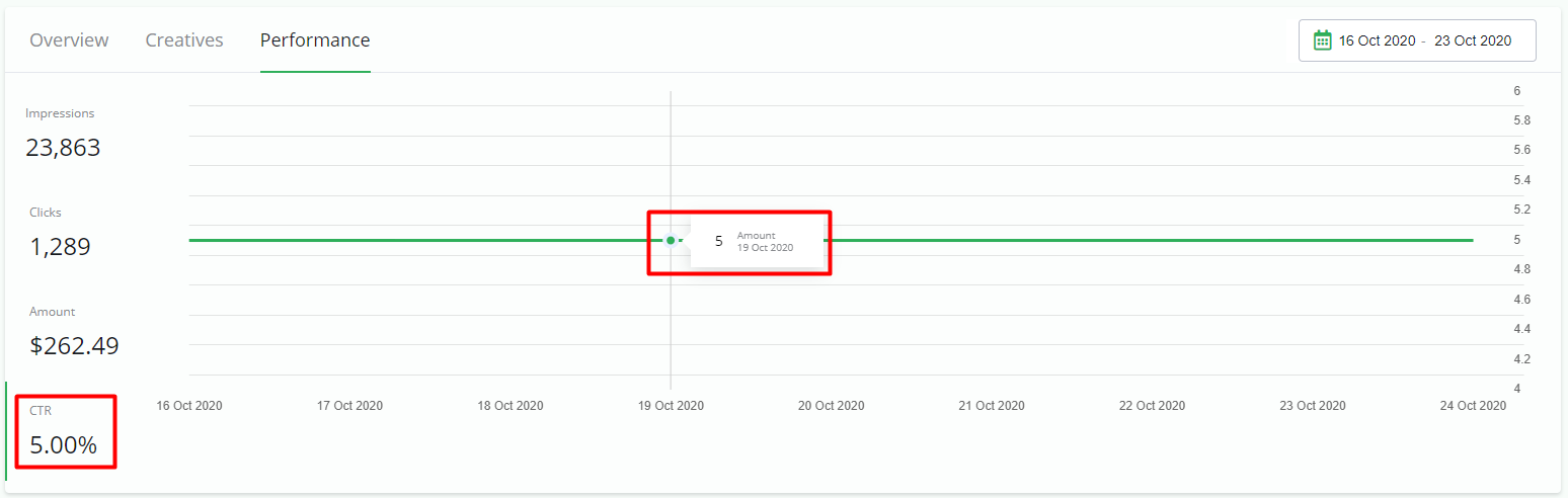 In addition to Impressions, Clicks and Amount, the Campaign details show you CTR (Click-Through-Rate).